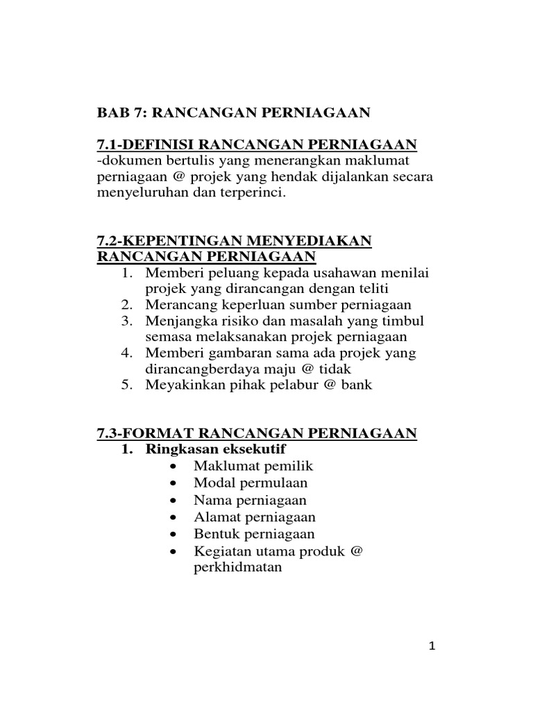 Rancangan perniagaan juga dikenali sebagai kertas kerja. Ini adalah peta jalan untuk membuat model perniagaan yang layak. Sebagai rujukan pada masa depan 3. Sumber hukum ini dibagi menjadi : Kepentingan menyediakan rancangan perniagaan secara bertulis atau dalam bentuk dokumen seringkali diabaikan oleh usahawan kecuali oleh itu, penyediaan dokumen ini dapat membantu usahawan mengenal pasti jumlah modal permulaan dan sumber pembiayaan yang diperlukan.
