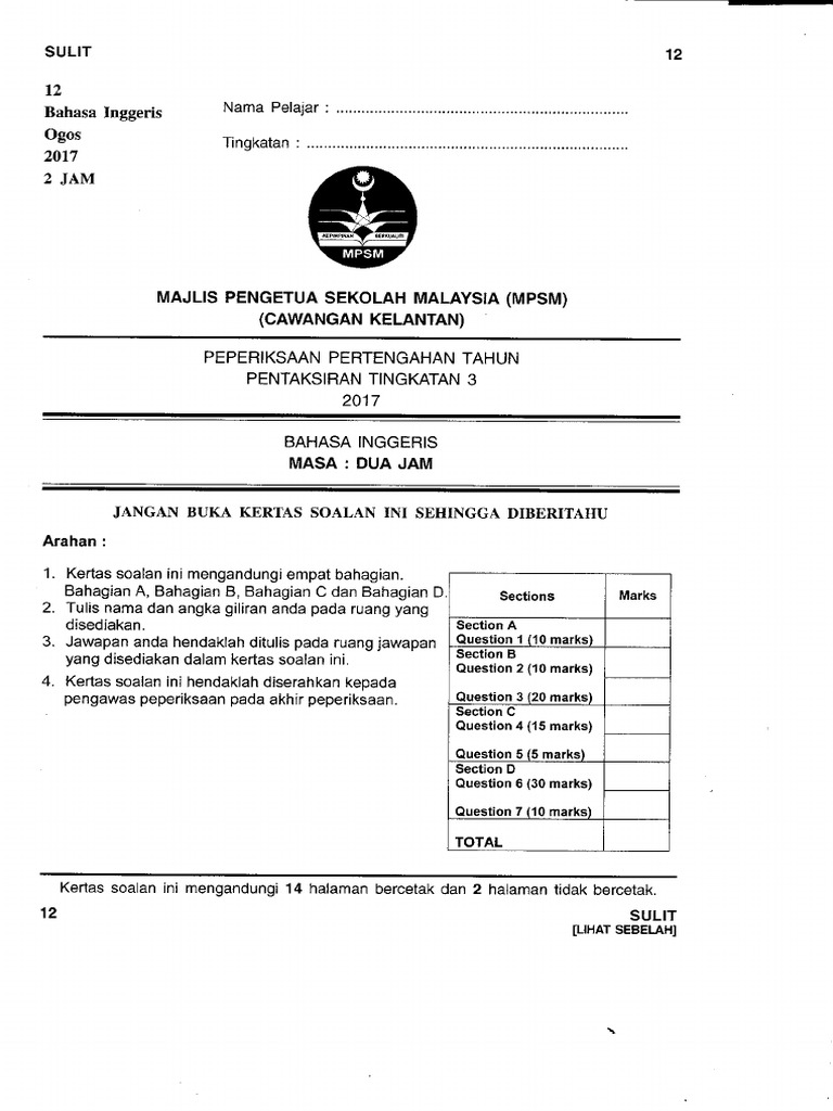 Kertas soalan peperiksaan percubaan pt3, ujian, pertengahan tahun, akhir tahun, kbat, karangan, novel, buku teks tingkatan 1, tingkatan 2, tingkatan 3. Kertas peperiksaan ini adalah bahasa inggeris untuk murid darjah 3 mengikut kurikulum standard sekolah rendah (kssr). Kertas soalan pentaksiran tingkatan 3 bahasa inggeris. Calon wajib menduduki semua instrumen pentaksiran bagi mata pelajaran yang didaftar. Use the download button below or simple online reader.